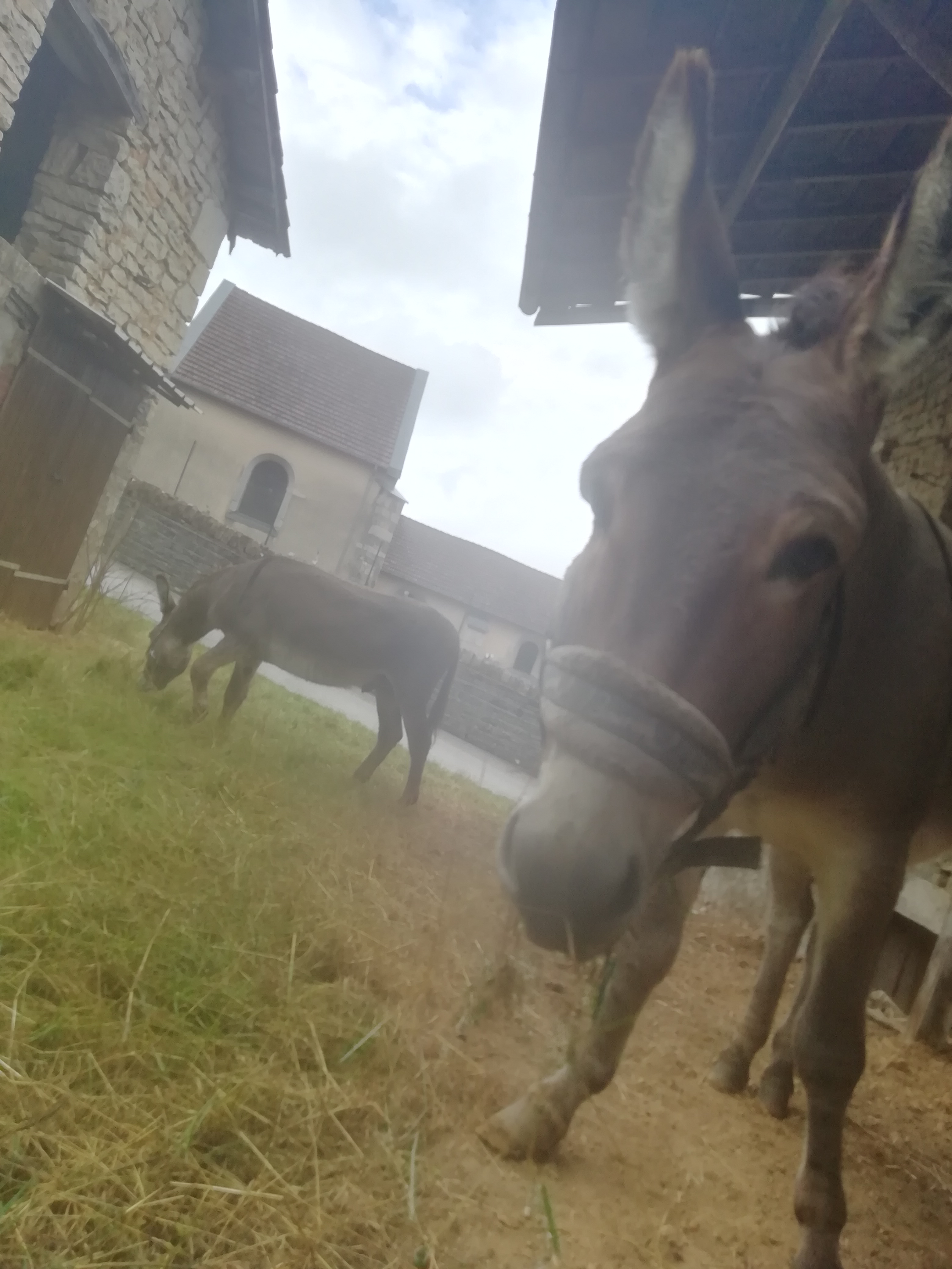 Début des présentations ! Voici POMPON et DEDE. Deux ânes de Provence âgés de 5 ans et issus d’une adoption suite à une histoire plutôt triste; leur maître venait de décéder en Mai, il était le seul à les avoir manipulé. Son épouse devant par ailleurs vendre la maison familiale à contacté la SPA qui est directement venue vers nous. Une rencontre, puis deux et les voici arrivés dans notre beau Jura pour démarrer une nouvelle vie à nos côtés pour la médiation animale en EHPAD, de belles balades lors de l’organisation d’évènements ou tout simplement pour nous aider à tondre chez nos clients ! Bienvenue ![]()