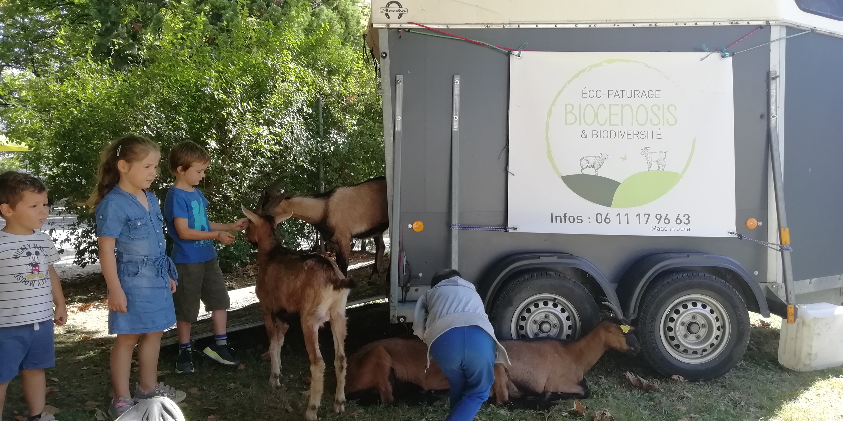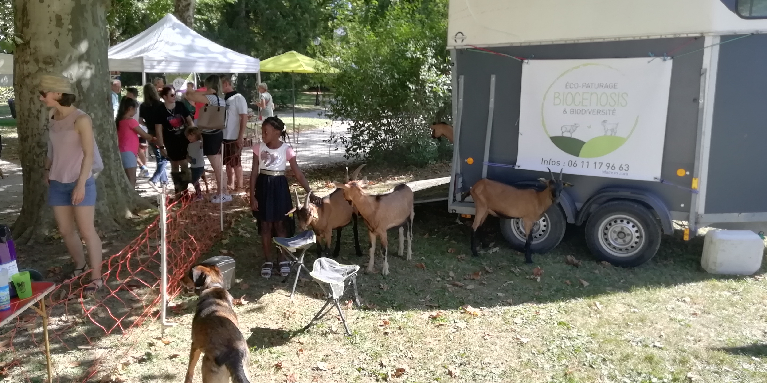 Nous étions donc début du mois dernier, invité au parc des thermes de LONS-LE-SAUNIER pour le festival du Bio »Regain » et le forum des associations. Une occasion rêvée pour nos biquettes d’assouvir leurs besoins de caresses! Pour le plus grand plaisir des enfants de passage et sous le regard de nos chiens. Nous avons rencontré des gens formidables, dévoués à des causes qui nous tiennent à cœur : lien social, écologie, bien-être animal. RDV l’an prochain!