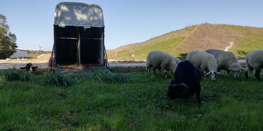 Pas à pas, les moutons ont été conduit vers le van dans une coordination parfaite entre le chien et l’humain.
