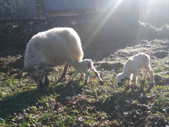 Un peu plus sensibles au froid que nos races locales, elle ont passé l’hiver dans notre ferme après un court passage sur notre chantier sur l’autoroute du Jura. Elles ont fait leur première sortie hier à Véria!