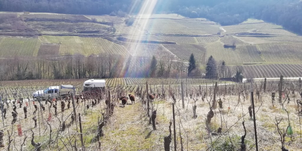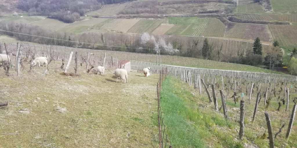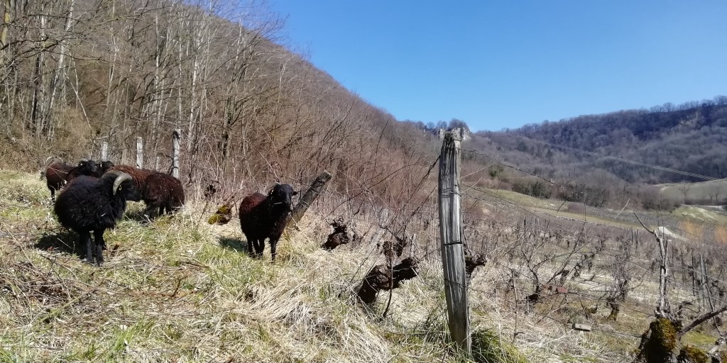 Second chantier viticole avec cette fois nos moutons pour un entretien – amendement avant bourgeons ce printemps pour le plus connu de nos druides Jurassien : Stéphane Meyer!
