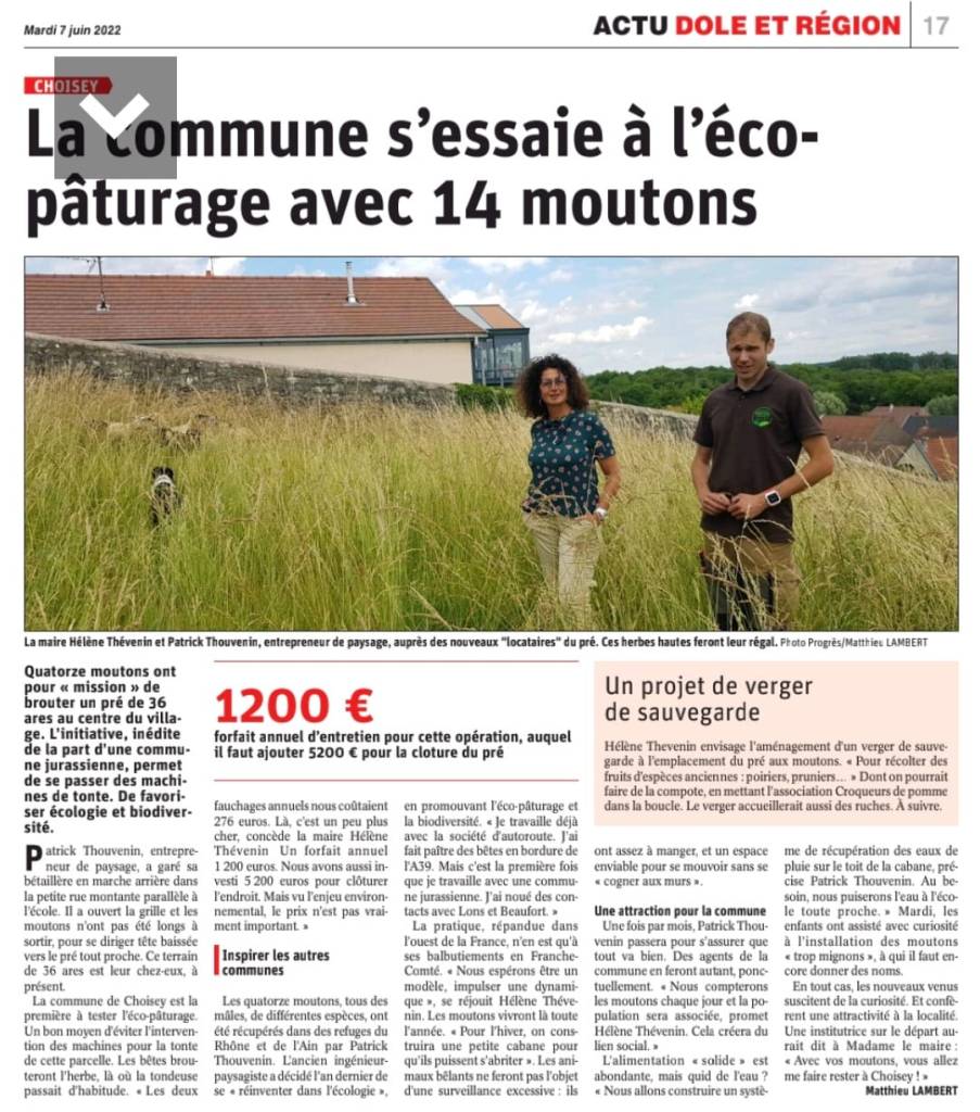 Un grand merci à la commune de Choisey qui est la première localement à se lancer dans l’éco-pâturage.